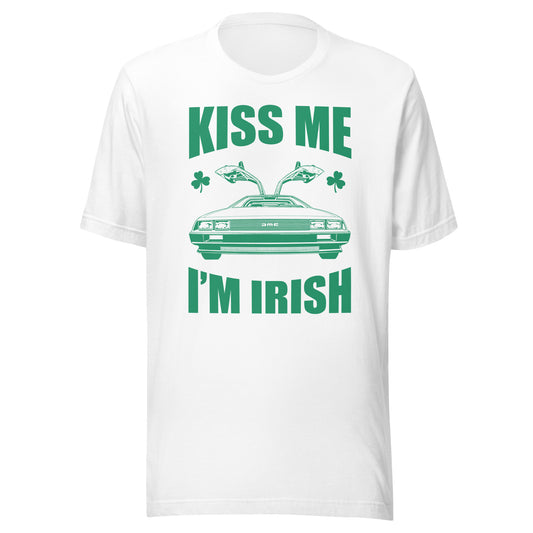 Kiss Me, I'm Irish - White DeLorean T-Shirt